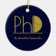 A PhD graduation ornament with a (non-foil) gold glitter and blue design. Simply customize with your graduate’s name, add this ornament to your cart, and give this keepsake of their major achievement.