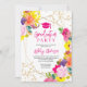 Class of 2024!! A chic bold and vibrant spring, summer yellow, pink, purple floral watercolor and gold glitter confetti typography graduation party invite with vibrant bohemian hand painted flowers, greenery watercolor leaf branches with gold geometric terrarium frame, add your photo at the back