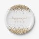 Gold Glitter Borders Script Happy New Year Paper Plate