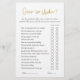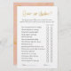 This girly golden glitter bridal shower or wedding game 'Over or Under' will be loved by your guests. The romantic design features golden lettering and a rose gold marble background on the back of the flyer. Our double sided game cards are a beautiful and practical addition to any bridal shower. These professionally designed cards are quickly customisable. You can personalise the back of the card with the names, dates, or any other text. Add your custom wording to this design by using the "Personalise" button on the right-hand side of the item, or click the "Edit" button to arrange the text, change the fonts and colours.