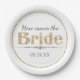 These glamourous party plates feature a bachelorette, bride-to-be theme. The phrase "Here comes the bride" is printed across the centre, with "Bride" printed in a gold glitter font. A luxurious band of diamonds is printed below it. A sample wedding date is printed at the bottom which you can personalise to include your own date or other custom text.