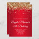 Gold Glitter Bright Red Gradient 18th Birthday Invitation