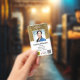 Easily upload your own logo, photo, QR or bar code. Stand out from the crowd with delightfully fun glitter on your staff ID badges. The extra text reads "Fully Vaxxed". Editable templated includes name, position, qualification, issue and validity date. Gold Glitter Caregiver QR Barcode Photo ID Badge. See our collection for more great Photo ID badge ideas.