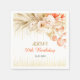 Elegant and stylish floral birthday paper napkin features stunning watercolor yellowish orange flower with beige leafy greenery and long gold glitter rain garland. Perfect party supplies for flower themed birthday celebration.