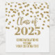 Graduation party custom wine bottle labels class of 2025 with gold glitter pattern confetti.