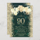 Gold Glitter Confetti Balloons Green 90th Birthday Invitation