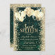 Gold Glitter Confetti Balloons Green Sweet 16 Invitation
