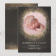 Photo baby girl birth announcement with gold glitter glamour sparkles