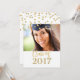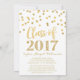 Graduation party invitation custom photo card class of 2017 in glamourous gold glitter print effect confetti pattern and hand lettered style text.