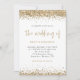 Gold Glitter Confetti Borders Script Wedding. A stylish set typography is in gold for the main heading the Wedding Of complementing the rest of the text which you can easily personalise, with gold faux glitter confetti borders at the top and bottom and also on the back. Add your QR code to your wedding website on the back makes this a convenient option for your guests to RSVP and see all the details without the need for separate RSVP and details cards.