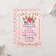 Gold Glitter Crown Floral Dots Pink 1st Birthday Invitation