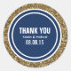 Gold Glitter Customisable Thank You Label Round Stickers With Dark Navy Blue and White Circle Designs. Many other Colours Available. Can Be Used for a variety of events from Weddings To Birthdays and other events of your choosing.