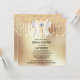 Beautiful faux gold glitter drippings and dangling string lights appear to glisten and shine against a faux gold shimmer background on which a pretty faux white coloured satin bow with a diamond centre rests.The overall feel is elegant and chic. This is ideal for summer; spring; winter and fall bridal shower or special birthday celebration events. Feel free to delete or move the templates around and to change the size and style of the fonts if preferred.
