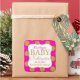 Gold glitter-look dots and hot pink background modern baby shower gift label.