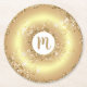 Gold glitter doughnut monogram script bold luxury round paper coaster