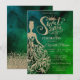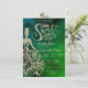 Gold Glitter Dress,Diamonds Watercolor Green Invitation