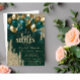 Gold Glitter Drips Balloons Green Sweet 16 Invitation