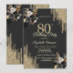 Gold Glitter Drips Black Roses Dark 80th Birthday Invitation