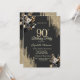 Gold Glitter Drips Black Roses Dark 90th Birthday Invitation