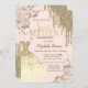Gold Glitter Drips,Dress,Floral Cream Sweet 16 Invitation