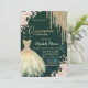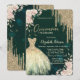 Gold Glitter Drips,Dress,Floral Green Quinceanera Invitation