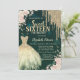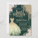 Gold Glitter Drips,Dress,Floral Green Sweet 16 Invitation