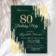 Gold Glitter Drips Green 80th Birthday Invitation
