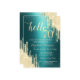 A modern, chic, and glamorous with glitter drips on a green metallic background.