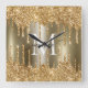 Gold Glitter Drips Monogram Personalized Square Wall Clock