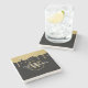 Chic gold glitter drips, script name, and gold monogram on a black background coaster. You can personalise the name, monogram and customise the font and colours to create your own unique design. Designed by Thisisnotme©