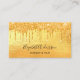 An elegant and glamourous business card on a faux gold looking background decorated with faux glitter drips, paint dripping look on front. Elegant white hand lettered style script. Personalise and add Your name, title, contact info and your own QR code to your website address.