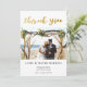 Wedding thank you card with your own photo and short message. Faux glitter gold hand lettering