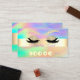 Elegant chic shiny gold stripe, and faux lashes on colourful holographic loyalty card.