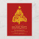 Gold Glitter Christmas Tree on Festive Red Elegant Script Christmas Holiday Invitation Postcard. Invite your family, friends and colleagues to celebrate this holiday season with this festive and modern Invitation postcard. Perfect for all occasions of Holiday Celebration. All the texts are pre-arranged for you to personalise easily and with your own details. Happy Holidays!
