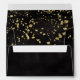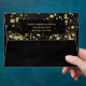 A gold faux glitter flake pattern is printed on the inside and outside of these black envelopes that feature your FREE return address on the back flap in gold chic lettering.