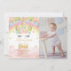 Gold Glitter Floral 1st Birthday Unicorn Photo Invitation