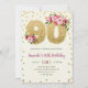 Pink Floral and Gold Glitter Invitation Card for 90th Birthday Party with Glitter Numbers