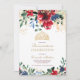 A chic and luxurious gold glitter confetti and red burgundy, navy blue rustic floral watercolor with elegant calligraphy typography Quinceañera birthday party invitation, with a hand drawn luxurious princess crown tiara gold glitter. Add your photo at the back.