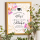 Class of 2024!! A chic spring, summer pink, purple and orange floral watercolor and gold glitter confetti typography graduation welcome sign with hand painted flowers, greenery watercolor leaf branches with gold geometric terrarium frame on blush pink background,