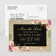 Gold Glitter Floral Wedding Save the Date Announcement Postcard