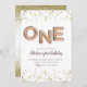 Gold Glitter Foil Balloon 1st Birthday Girl Invitation