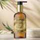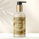 This elegant product label for cosmetic bottles features a faux gold background with a faux gold glitter foil border. This label contains space for your product name, business name, product weight, ingredients, instructions, social media, and business address.