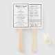 Perfect for weddings, this two sided fan program features easy to personalise text with the wedding ceremony events on one side and the wedding party listed on the other with a space for a heartfelt written message from the couple to be. Elegant black text is sophisticated paired with a simple frame of faux gold glitter.