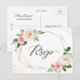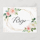 Gold Glitter Geometric Blush Floral Wedding RSVP Postcard.