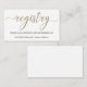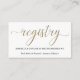 Simple elegance. Beautiful calligraphy accented with a faux gold glitter effect. Using a business card format easily and efficiently communicates your gift registry.