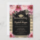Gold Glitter Graduation Cap,Stripes Floral Invitation