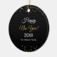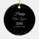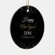 Celebrate a beautiful year and a fresh start with this Gold Glitter Happy New Year Ceramic Ornament. Featuring a radiant gold glitter design on a lovely black background, this ornament brings a touch of luxury to your holiday decor. With its elegant, customizable modern script greeting and year, it makes a wonderful keepsake to remember a special celebration or a thoughtful 'Thank You' gift for your guest. Hang it on your tree or place it on your table to use as a warm welcome for family and friends.