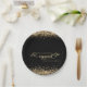 Gold Glitter Heart Script Black Engagement Thanks Paper Plate