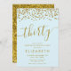 White and a sparkle of faux gold glitter are the perfect way to invite friends and family to your birthday celebration.