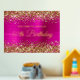 The background digital art features faux gold glitter, faux hot pink foil and sparkles that print like a photo on your sign.